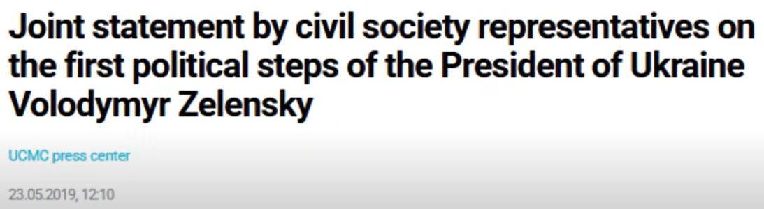 May 23, 2019 : Just after the election of Zelensky in March 2019 on a political program of peace with Russia and the implementation, finally, of the Minsk 2 Accords, the Ukraine Crisis Media Centre, “a conglomeration of all US funded media within Ukraine” as Mike Benz put it, issued the following joint statement, the famous “red lines memo” from the US, basically forcing Zelensky to renege on all the electoral promises just mentioned.